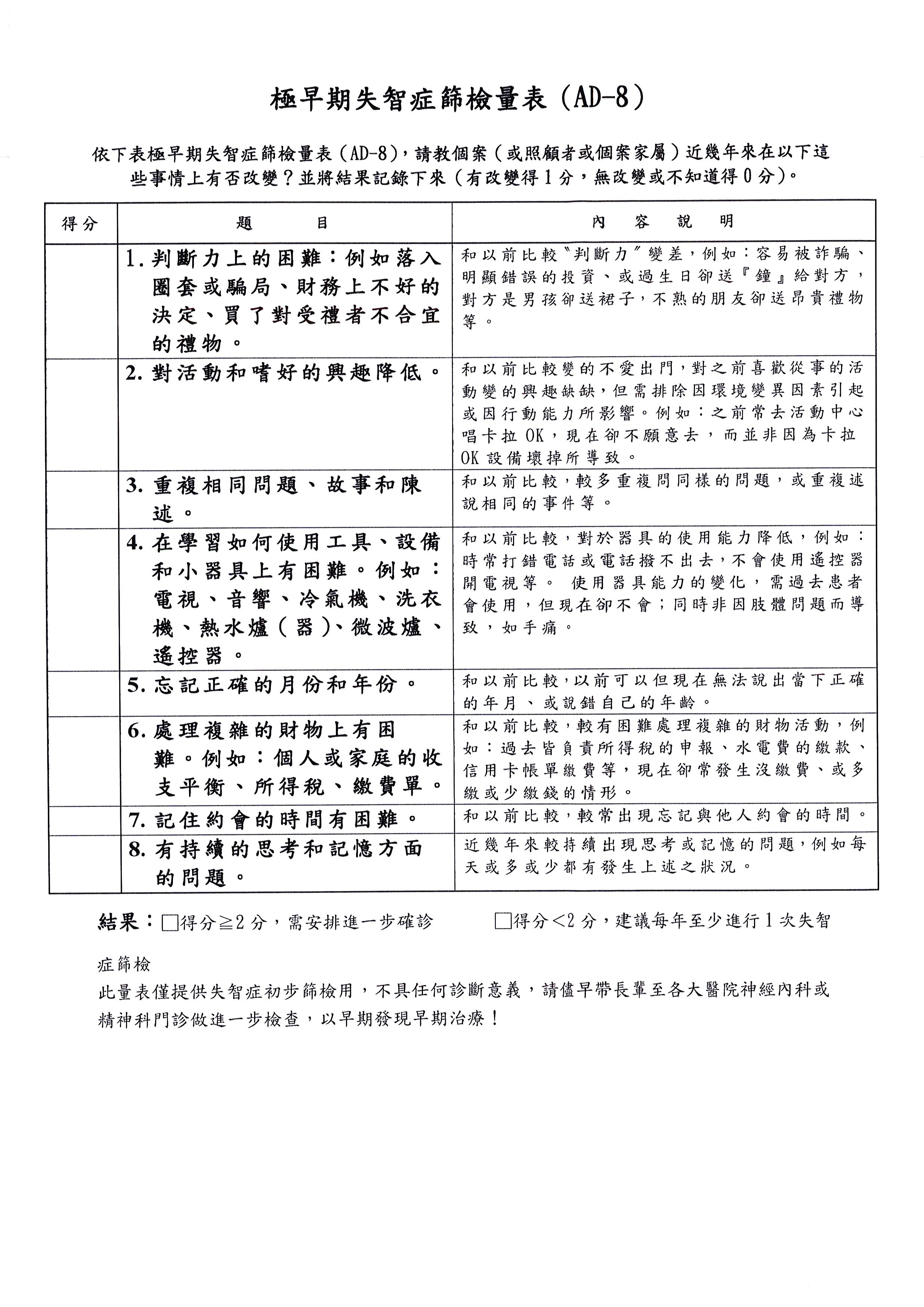 017 極早期失智症(AD-8)