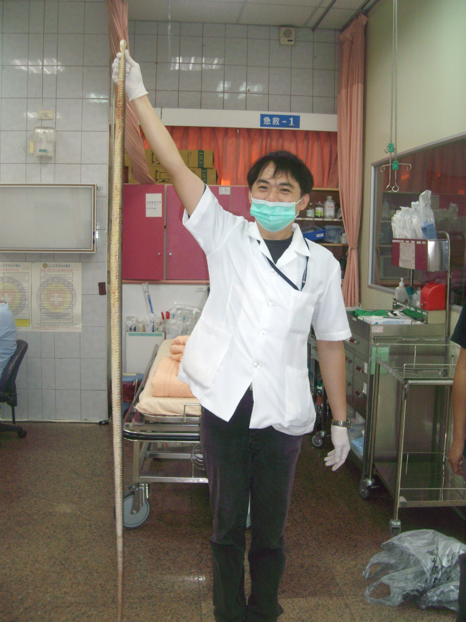 該院急診室主任張宏文醫師指出:此婦人是被過山刀咬傷,幸好這蛇是沒有毒性的,婦人被咬到右手,面積約五公分,到該院時立即給婦人開破傷風、抗生素的藥後,所幸是無大礙的;由於民眾不了解抓蛇的技巧,所以很容易在抓蛇的過程中被蛇咬傷,所以張主任呼籲民眾切勿自行處理,並請消防分隊協助處理,以免意外發生。