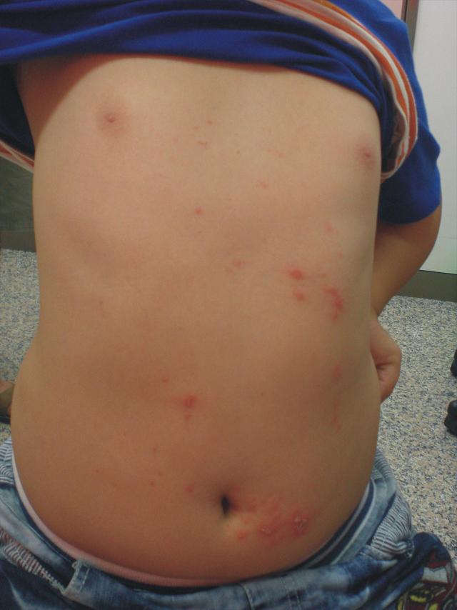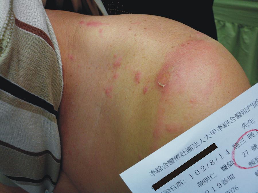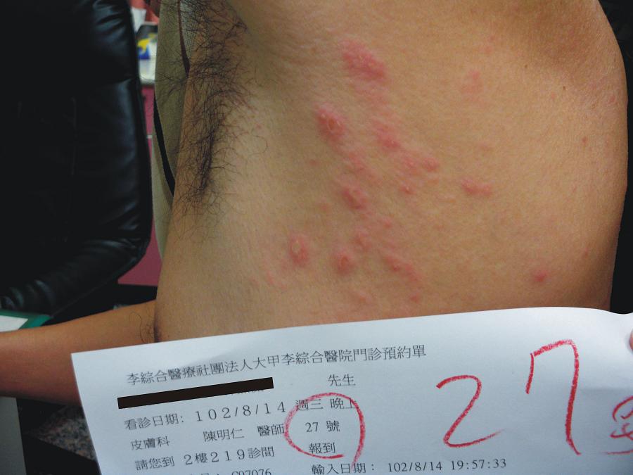 9歲的范小弟,家住外埔,幾天前忽然跟母親喊疼,母親仔細檢查,發現頸部有莫名的抓痕,肚子也忽然出現數處傷腫潰瘍,母親覺得納悶,前一天睡前還沒事,