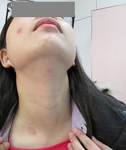 白色情人節將至,脖子上的小紅印在這個敏感的時期很容易被誤會是”種草莓”的印記。家住大甲、27歲的王小姐(化名),脖子、臉頰、下巴、肚子莫名其妙出現種草莓似的小紅斑,身上又癢又抓,至坊間診所就診,誤認為一般濕疹以類固醇藥物外敷治療,結果情況沒改善,病灶變得更大更紅。後來轉至大甲李綜合醫院就醫,經醫師仔細問診,原來與王小姐最近認養的帶有皮膚病的流浪貓有關,愛心的呵護與肌膚的接觸,可能導致人畜共通的黴菌感染,造成王小姐身上多處的小紅疹!為了證實皮膚遭黴菌感染,陳醫師刮取病灶的皮屑檢查,顯微鏡下發現盤踞在皮膚角質層多條黴菌的菌絲與孢子,確定皮膚黴菌的感染,原來種草莓的“親密愛人”,竟是朝夕相處的寵物貓咪!