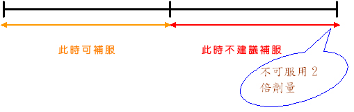 2、若已經接近下次服藥時間(指超過兩次服藥時間的中點),則跳過不用,下次恢復正常時間服藥。