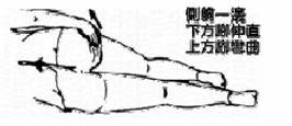 身體側躺,將下方的腿伸直,上方的腿彎曲靠近胸部。
