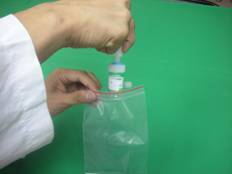 4.打開糞便瓶蓋,以採便棒挖取花生米大小之糞便,放入瓶內後旋緊瓶蓋,可採取不同地方的糞便 |