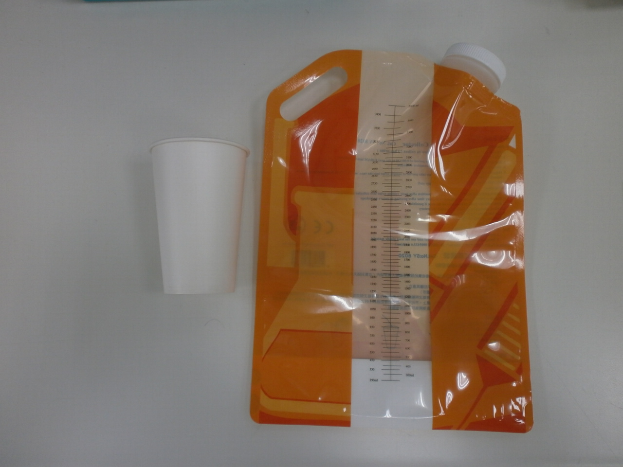 2.然後將第一泡尿解入大紙杯內。