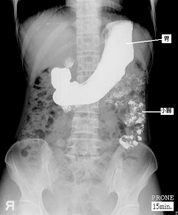 (1)當開始檢查時,會先給一小包蘇打粉,請合著一小杯的開水迅速吞下,此蘇打粉的作用是利用氣體使胃、腸道脹起來 以利觀察黏膜的情形。醫護人員會遞上一杯如奶昔般的腸胃道造影劑(鋇劑),請配合指示飲用,例如請您喝一口含在嘴巴,請您吞下時才可以吞下,檢查過程中檢查台上會開始平躺、俯臥、側躺或翻轉,有時則需要被檢查者配合閉氣,同時以X光視需要做不等次數之照相。只檢查食道、胃及十二指腸者約費時20~30分鐘,若包括空腸和迴腸者約費時2小時以上。