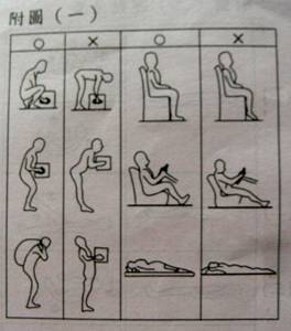 避免在某一種姿勢工作過久亦即要時常變換姿勢。