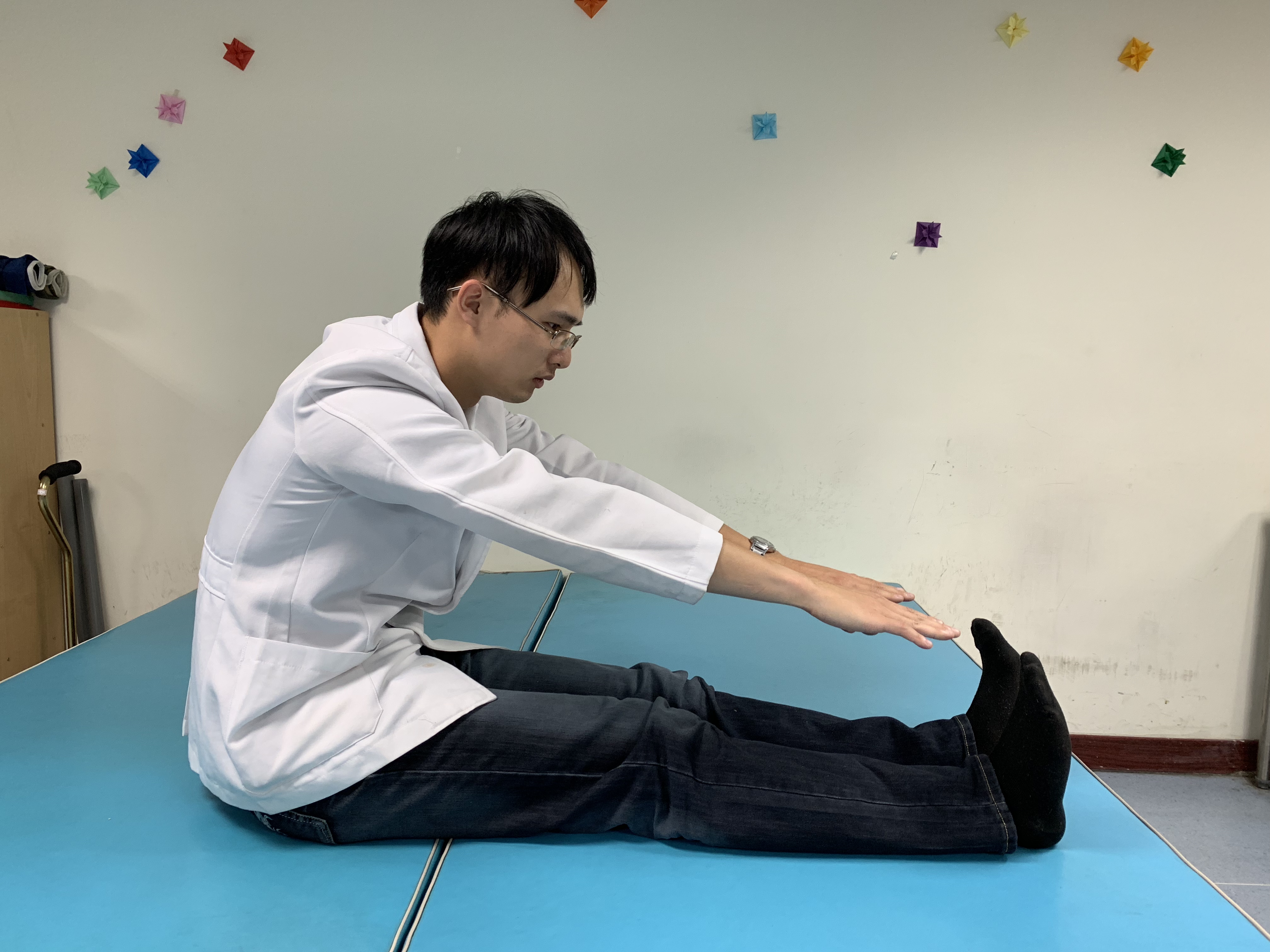 1酸痛可忍之下,可坐姿摸腳趾,注意雙膝須保持挺直,且動作要緩。