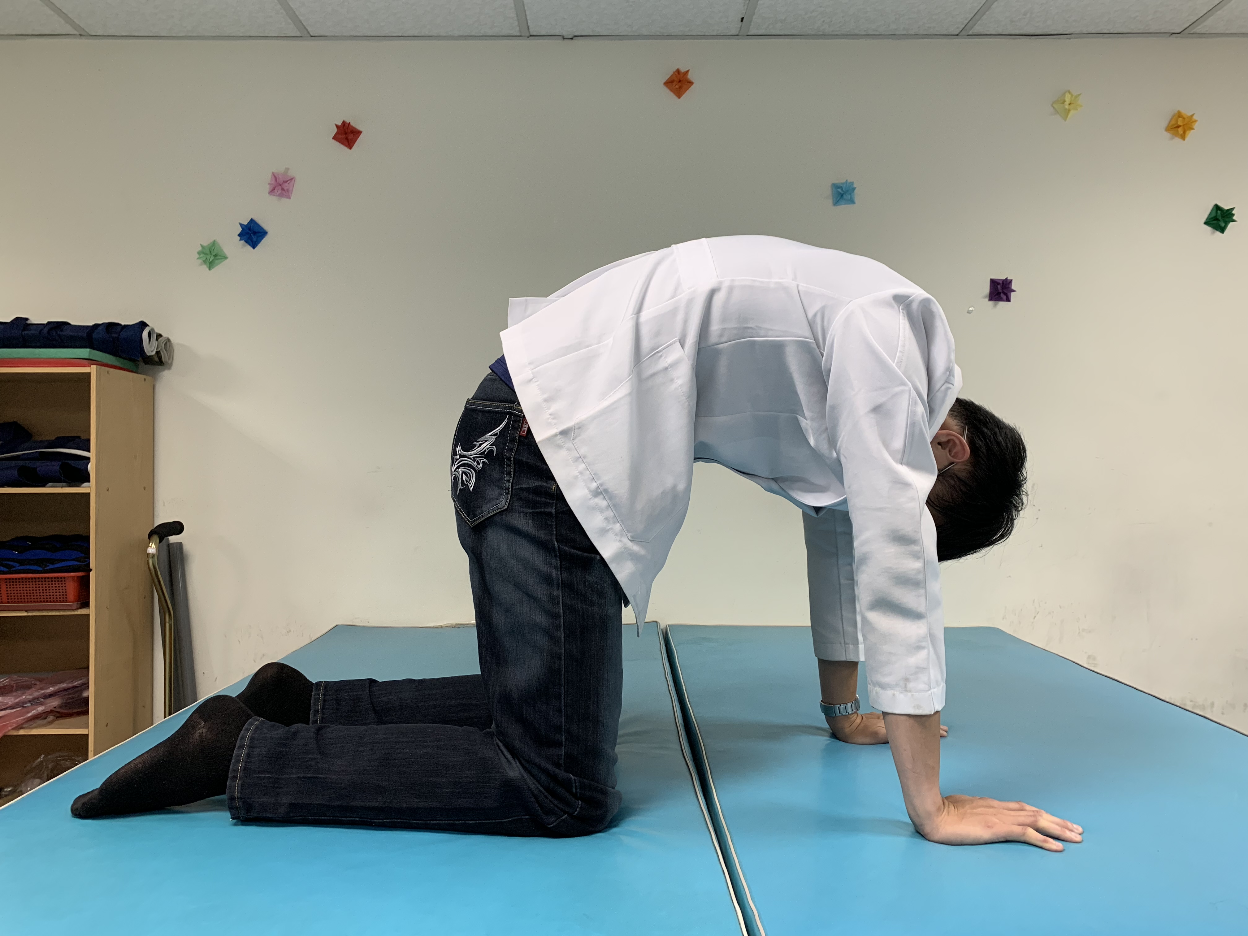1將二手二膝如四腳爬般,跪在床(墊)上。