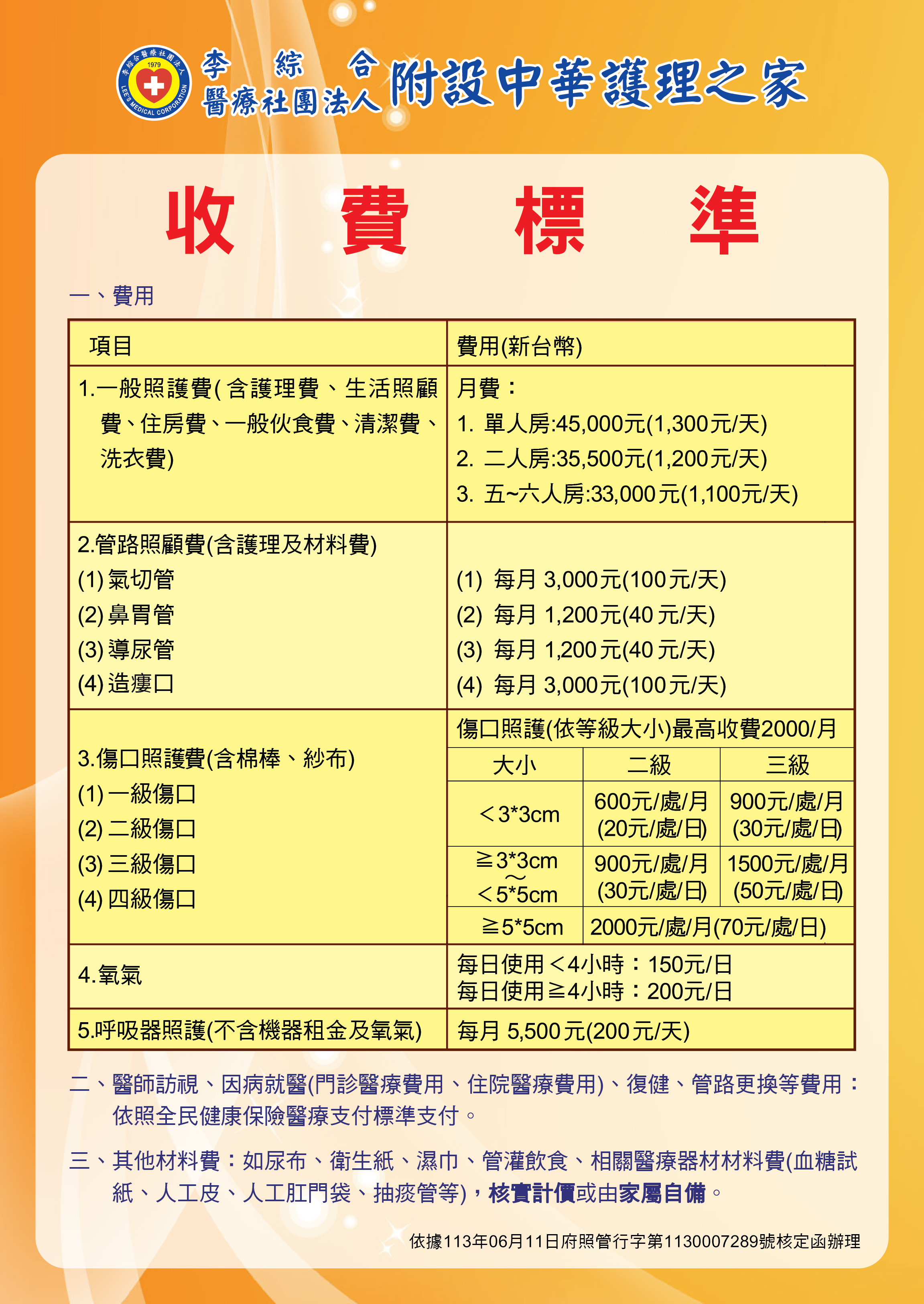二、醫師訪視、因病就醫(門診醫療費用、住院醫療費用)、復建、管路更換等費用:依照全民健康保險醫療支付標準支付。 |